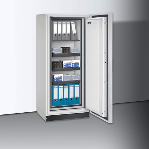 Der starke Brandschutz für 120 Minuten verhindert die Verformung der Hardware und schützt zudem vor Löschwasser und Brandgasen. So bleiben Ihre Daten und technischen Geräte auch im Katastrophenfall unbeschädigt. Zur Sicherung vor Diebstahl oder Spionage ist der Einbruchschutz dieser Serie deutlich erhöht: zertifiziert mit dem Widerstandsgrad II sind diese Tresore selbst mit modernsten mechanischen oder thermischen Werkzeugen nur nach einer längeren Zeit zu öffnen. Somit verhindern sie schnelle Zugriffsversuche und Ihre Daten bleiben unter Verschluss.